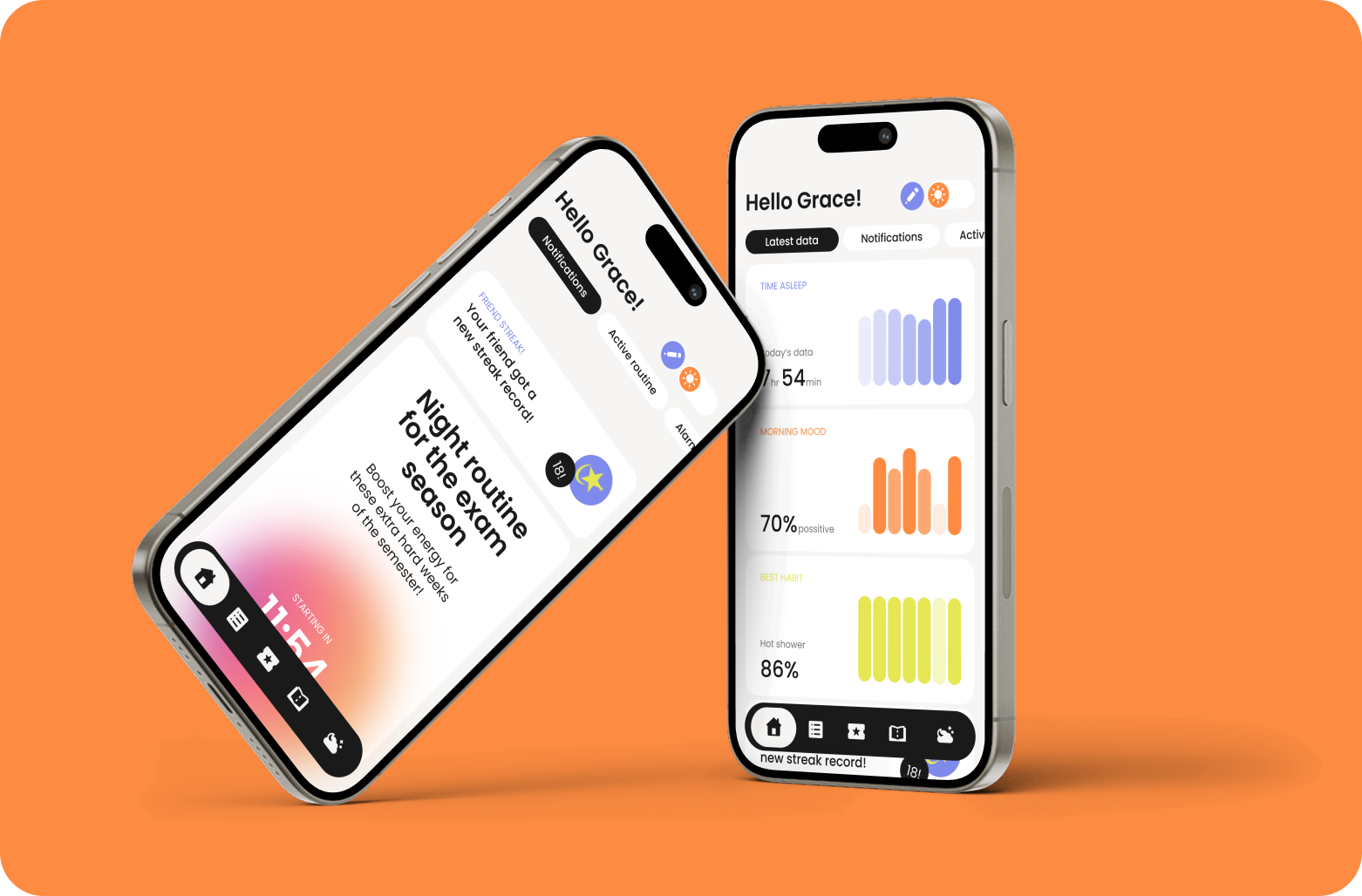 The app helps university students improve their sleep by turning routines and accountability into an engaging, energy-focused experience.