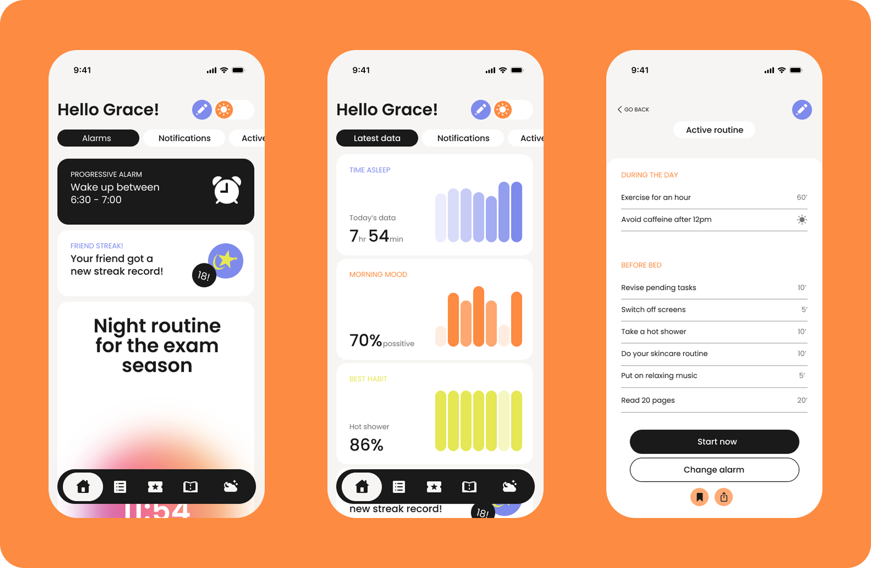 The main challenge was making sleep feel motivating rather than restrictive. Because the target users often reject rigid structures, Nest had to strike a balance between flexibility and consistency. Another challenge was ensuring the app worked equally well for both highly stressed students with irregular schedules and those seeking fine-tuning of existing habits.